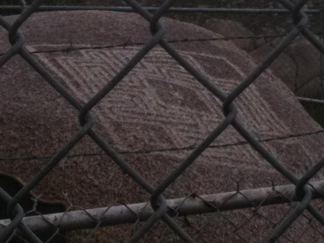 I drive all the way to the marina at Diamond Valley Lake, but it's $7 to park and I have no cash, so nevermind. Next, I head up to Maze Stone, park the car and make the short walk. As I'm approaching, I see a family of four around the fenced location, and I can hear dad saying "Is that northwest?" to mom, who's holding a sheet of paper.