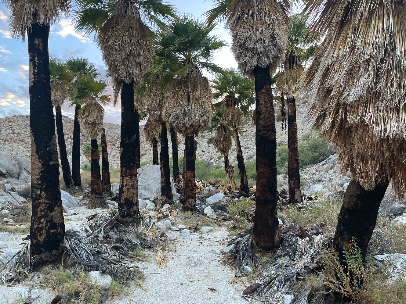 After 20 years, this palm grove still bore the scars of a fire: