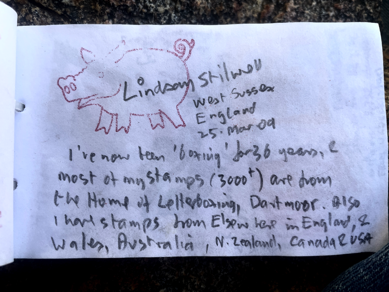 After breakfast, I spent most of day three with Gwen, then one of my last finds on the way home had an interesting logbook entry: